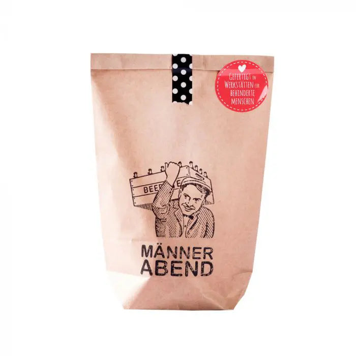 Mit dieser Tüte ist jeder Mann, jederzeit für einen Männerabend gerüstet.