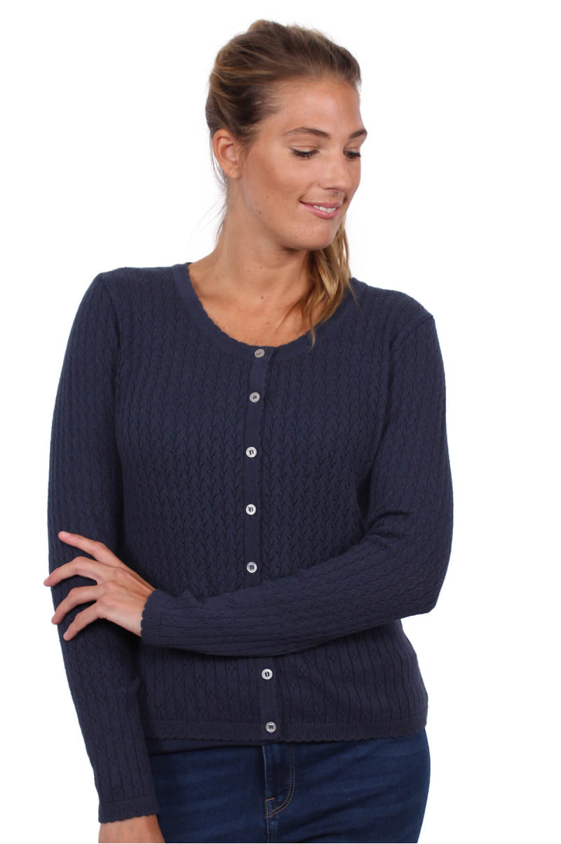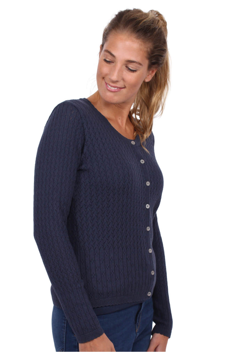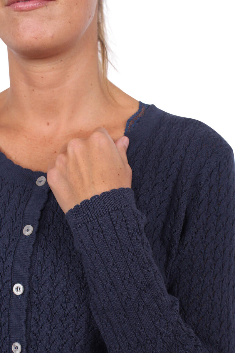 The beautiful eyelet embroidery makes this cardigan a real eye-catcher.